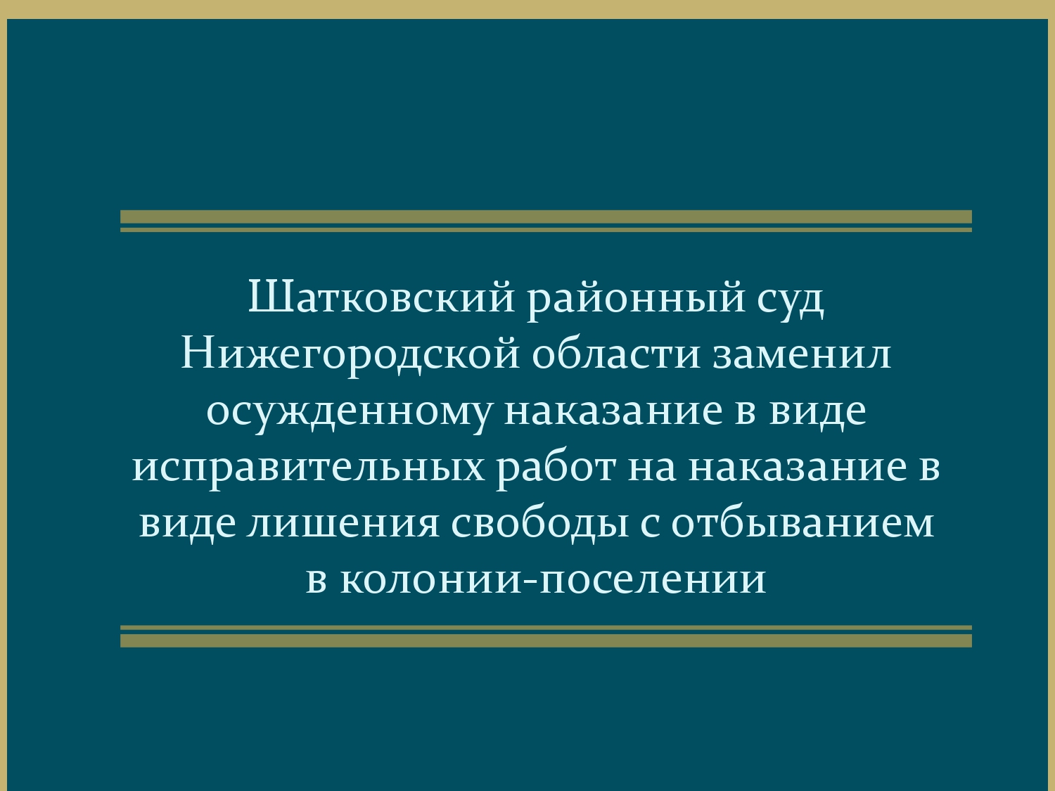 | Шатковский районный суд Нижегородской области заменил осужденному наказание в виде исправительных работ на наказание в виде лишения свободы с отбыванием в колонии-поселении | версия для печати |
